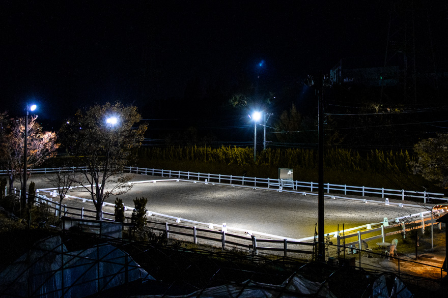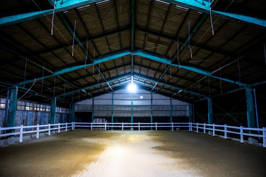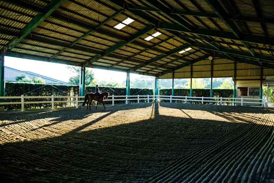 全天候型の練習場ですので、雨の日はもちろん日中日焼けを気にせずに騎乗できます。