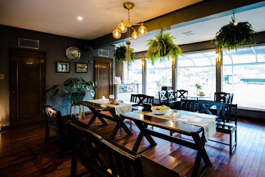 走る馬達を見ながらくつろげる空間。会員の方はコーヒーを飲みながらくつろいでいただいたり、友達同士でおしゃべりしながら乗馬風景を楽しんでいただいたりとご自由にお使いください。