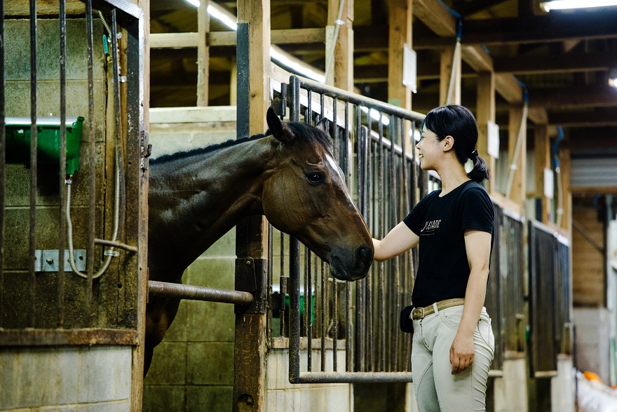 40頭収容可能で屋根には断熱材を使用しておりますので、夏は涼しく冬は暖かです。厩舎の床にはおがくずをたっぷり敷き詰め、馬房ごとに扇風機も完備いたしております。
